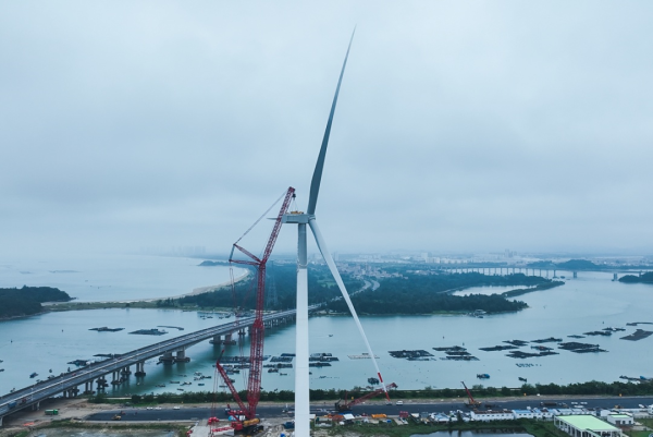 6月5日,当前全球已安装的最大功率等级海上风电装备——18兆瓦半直驱大功率海上风电机组,在广东省汕头市风电临海试验基地成功完成吊装,全球已安装的海上风电机组功率等级迈入新的里程碑。